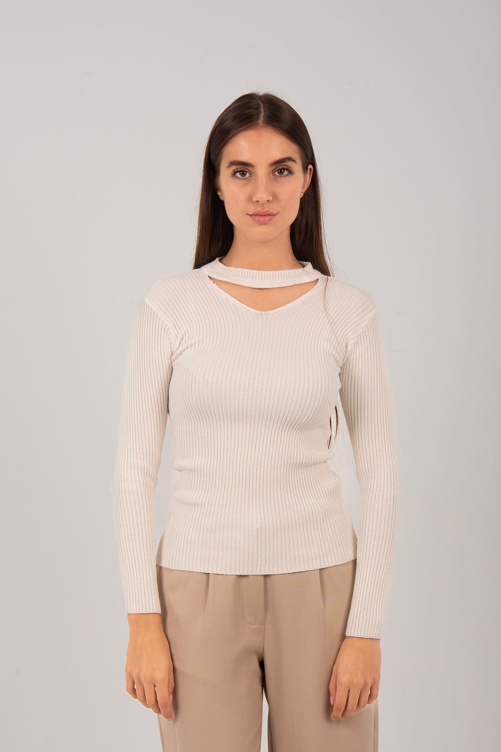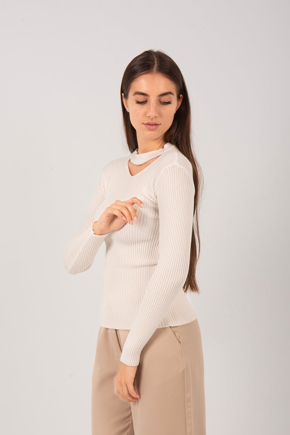 The Cut-out Knit Top adds a modern twist to your wardrobe with its stylish cut-out details and soft, breathable knit fabric. Perfect for layering or wearing on its own, it offers a chic and edgy look for any occasion.