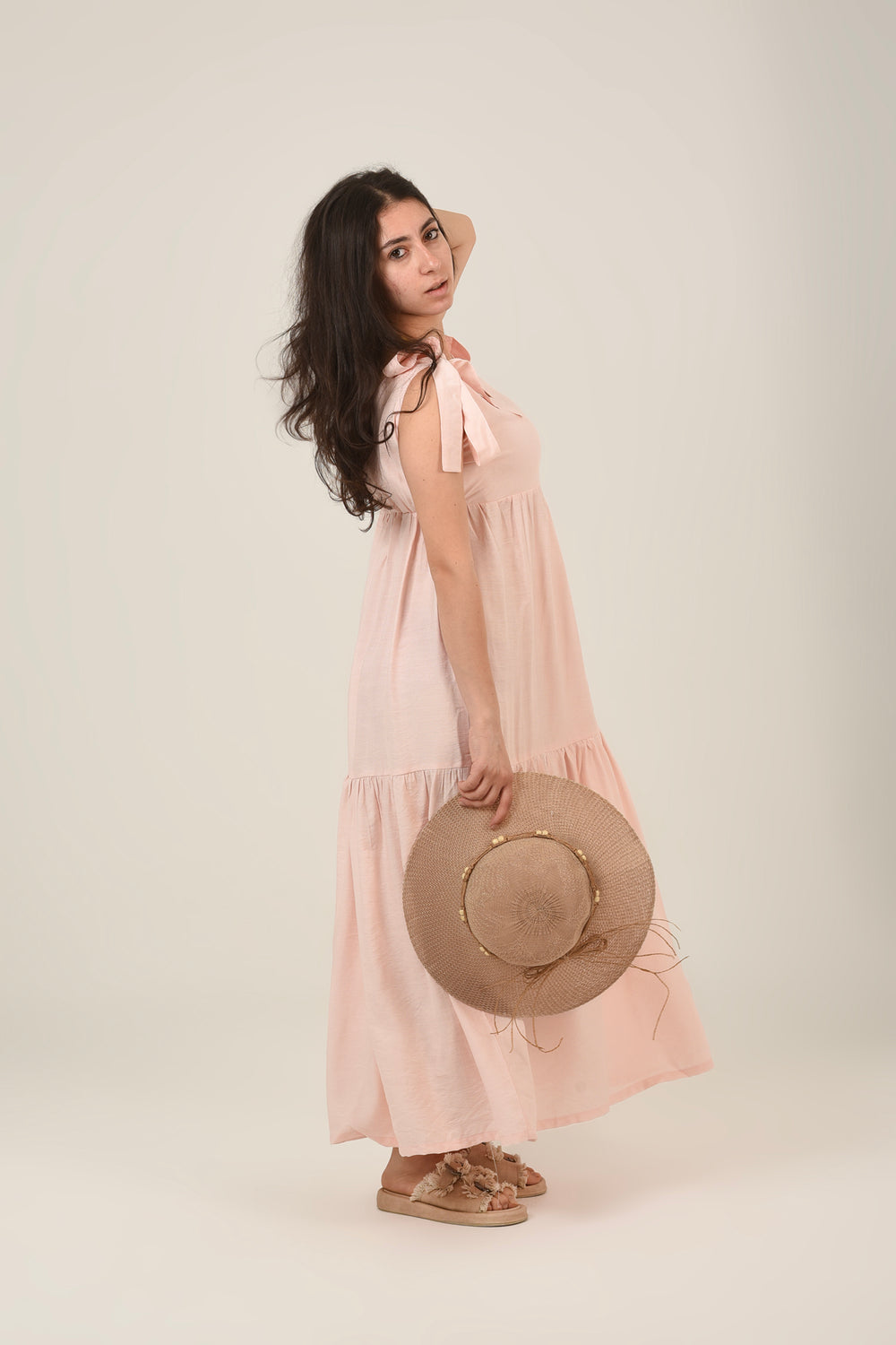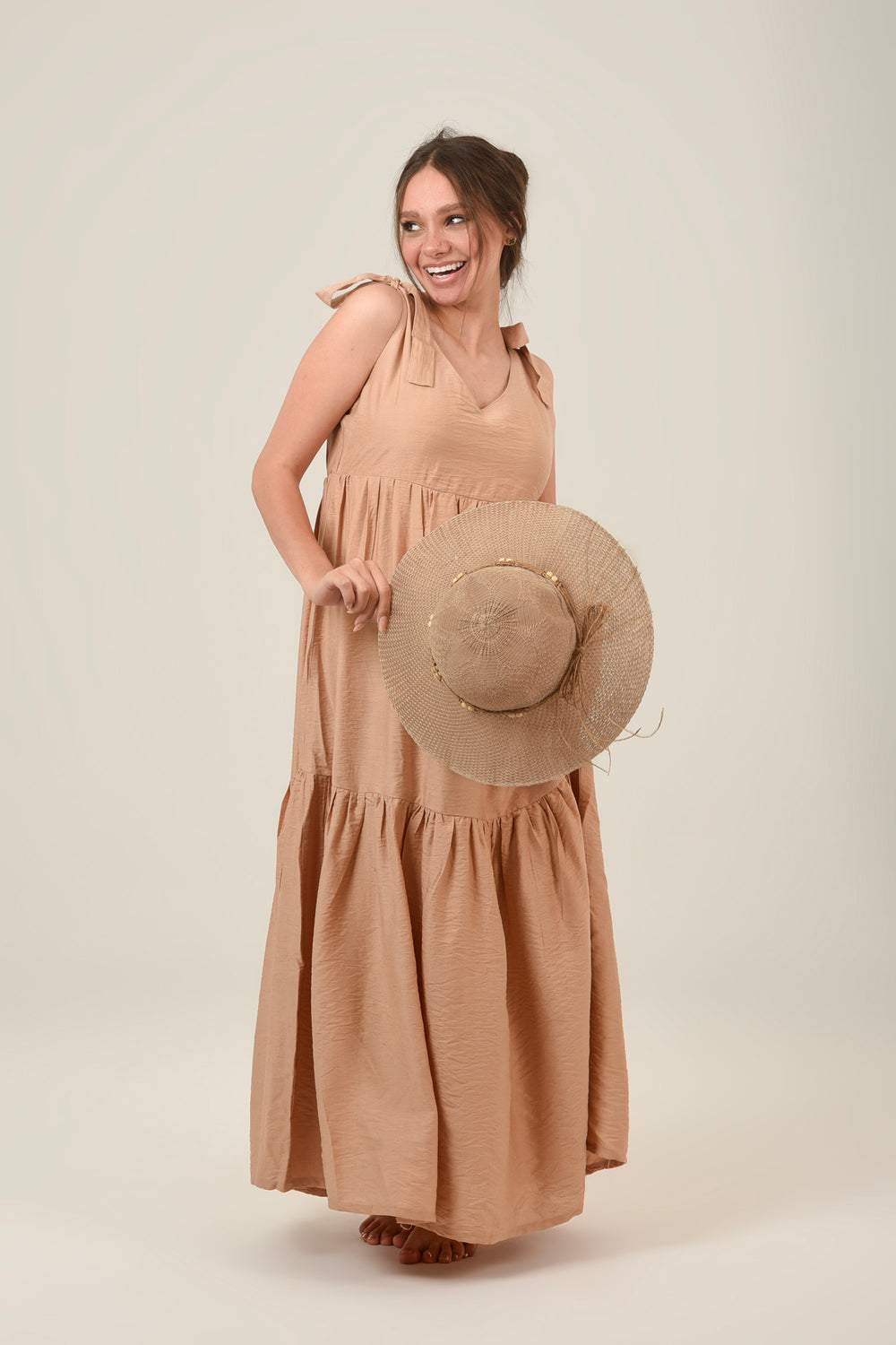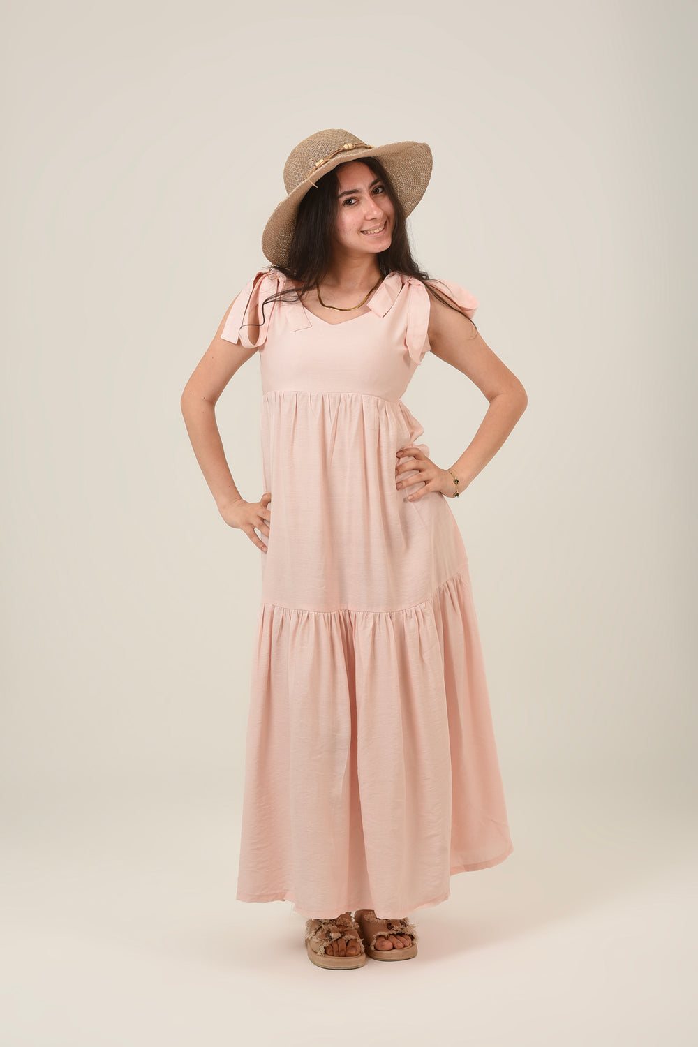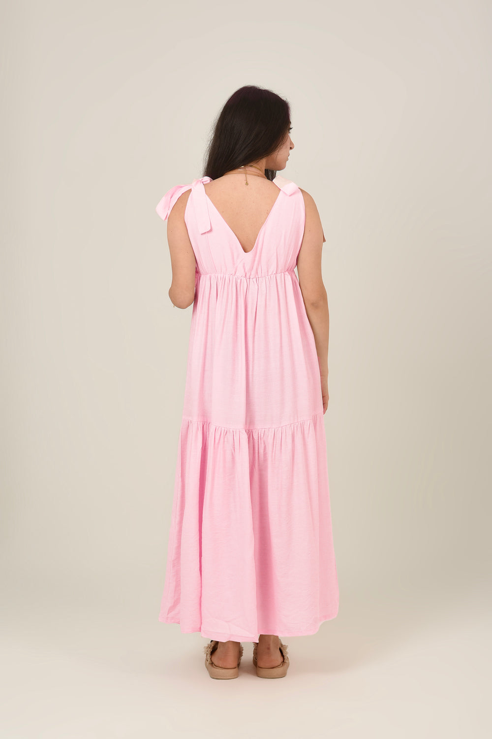 This full length V-neck dress, featuring a flattering neckline at both the front and back, is a stylish and versatile addition to your summer wardrobe. The adjustable shoulder ties allow you to customize the neckline depth for your comfort and style.