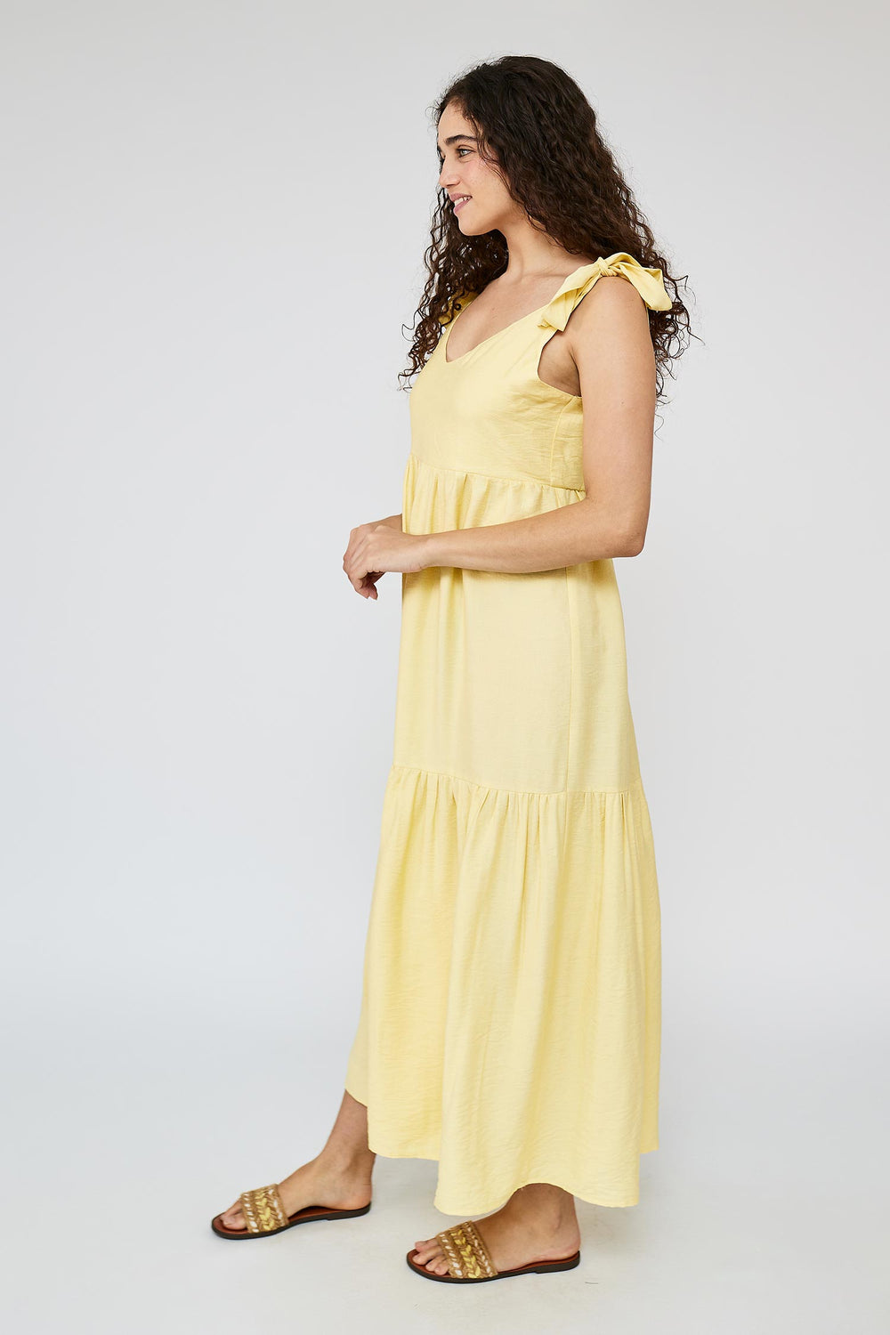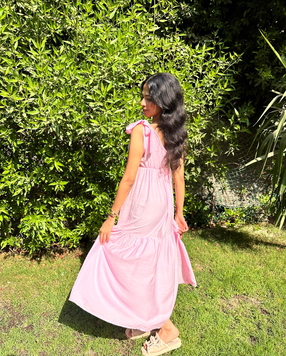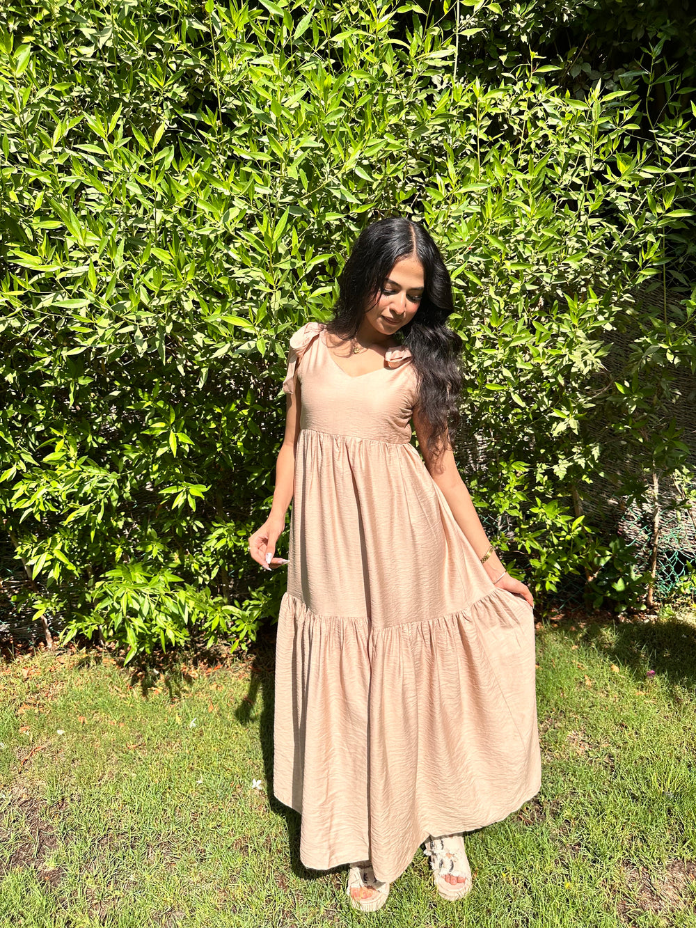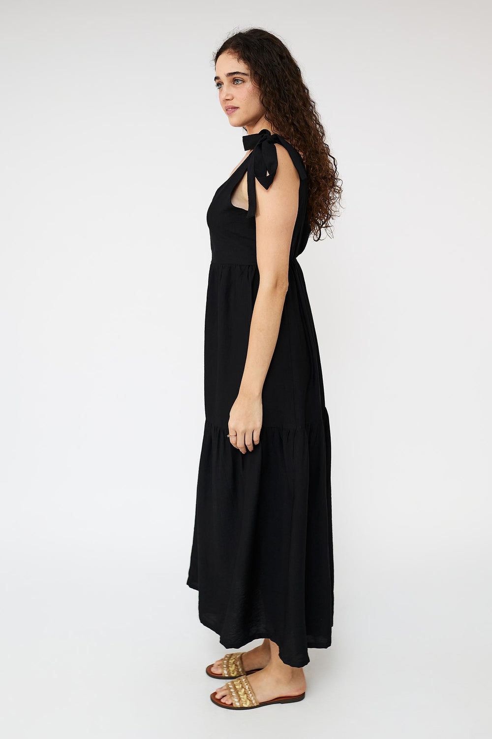 This full length V-neck dress, featuring a flattering neckline at both the front and back, is a stylish and versatile addition to your summer wardrobe. The adjustable shoulder ties allow you to customize the neckline depth for your comfort and style.