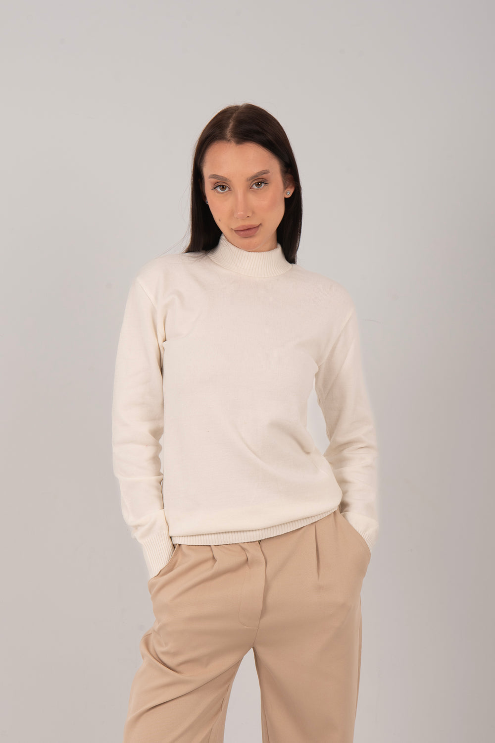 Relaxed Fit Knit Half-Neck Pullover for Women This cozy knit pullover combines comfort and style in an effortlessly chic way. Crafted from a soft, breathable knit fabric, it features a relaxed fit with dropped shoulders and a half-neck design for a modern, laid-back silhouette. The minimalist look makes it easy to style — whether layered over shirts or paired with your favorite denim or trousers. Perfect for cooler days, it’s a versatile essential that adds warmth and a touch of effortless elegance to any outfit.