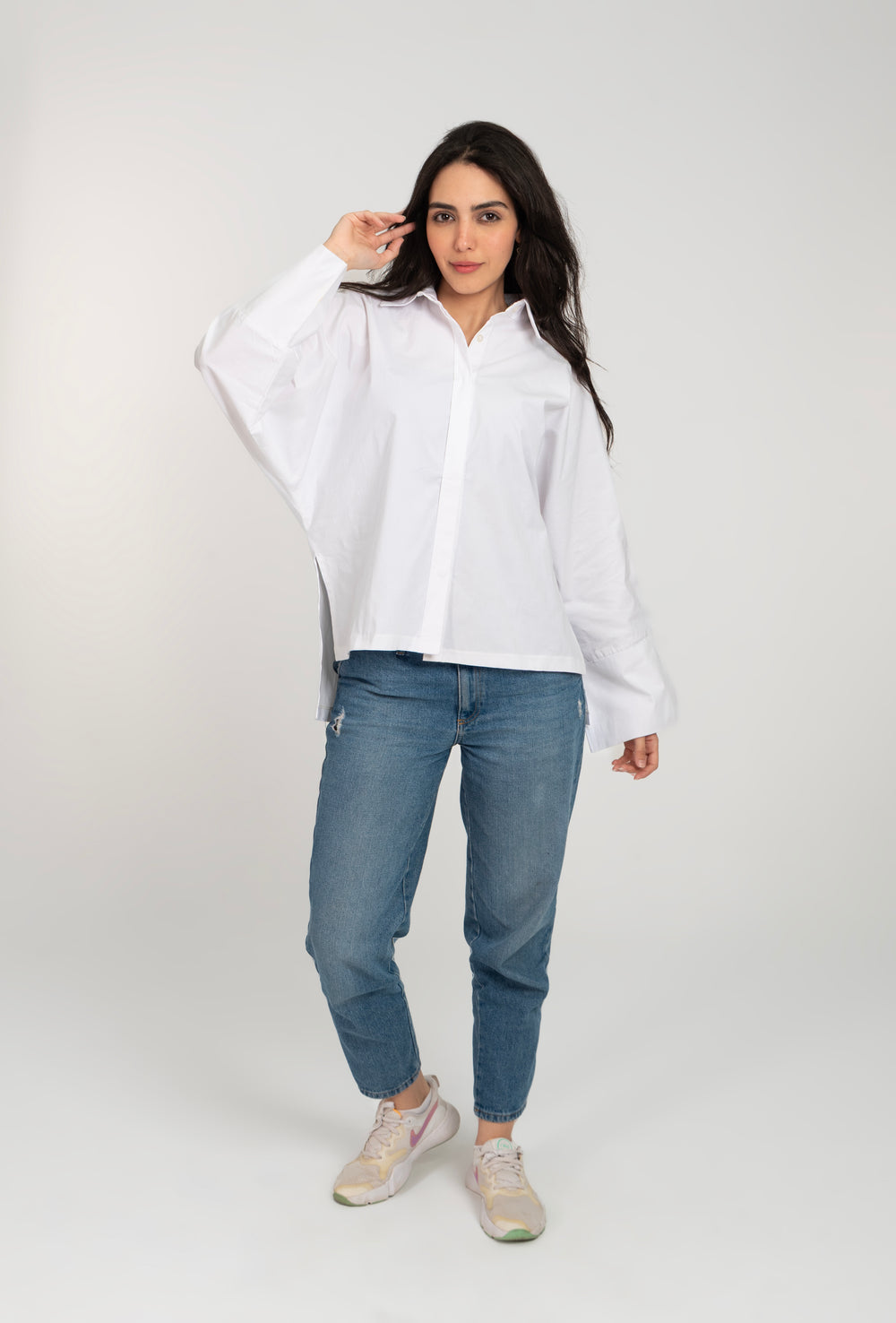 This Oversized Poplin shirt is perfect for those looking for a comfortable yet stylish option. Made with high-quality poplin fabric, this shirt is oversized for a relaxed fit. The breathable material ensures all-day comfort, and the oversized design allows for easy movement. A must-have for any wardrobe.